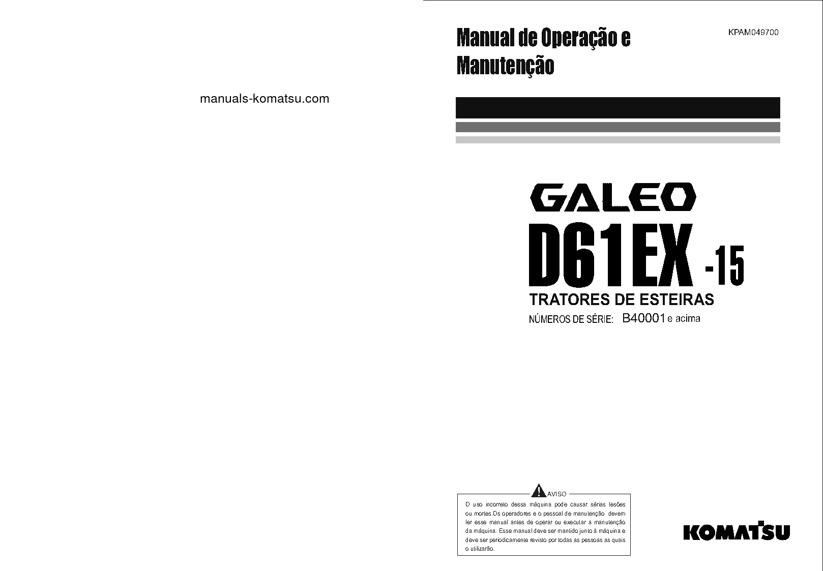 komatsu D61EX-15(BRA) S/N B40001-UP Operation manual (Portuguese)