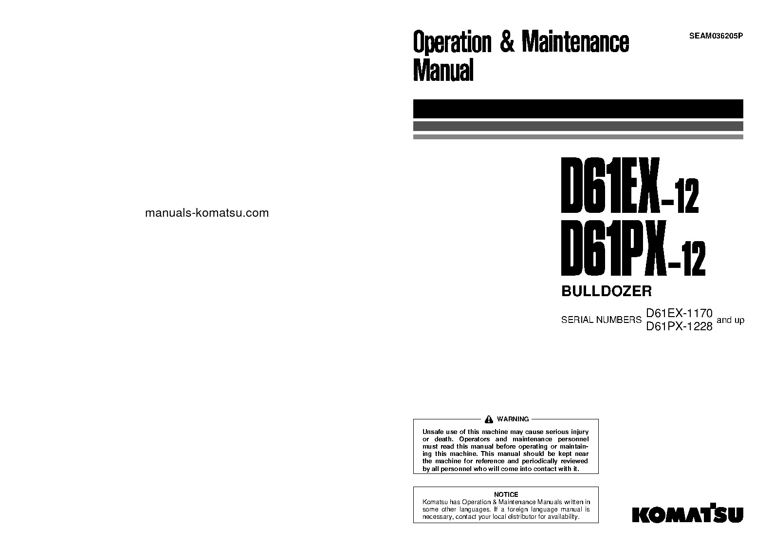 komatsu D61PX-12(JPN) S/N 1228-UP Operation manual (English)