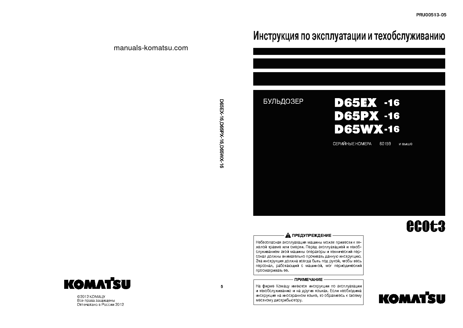 komatsu D65EX-16(JPN) S/N 80159-UP Operation manual (Russian)