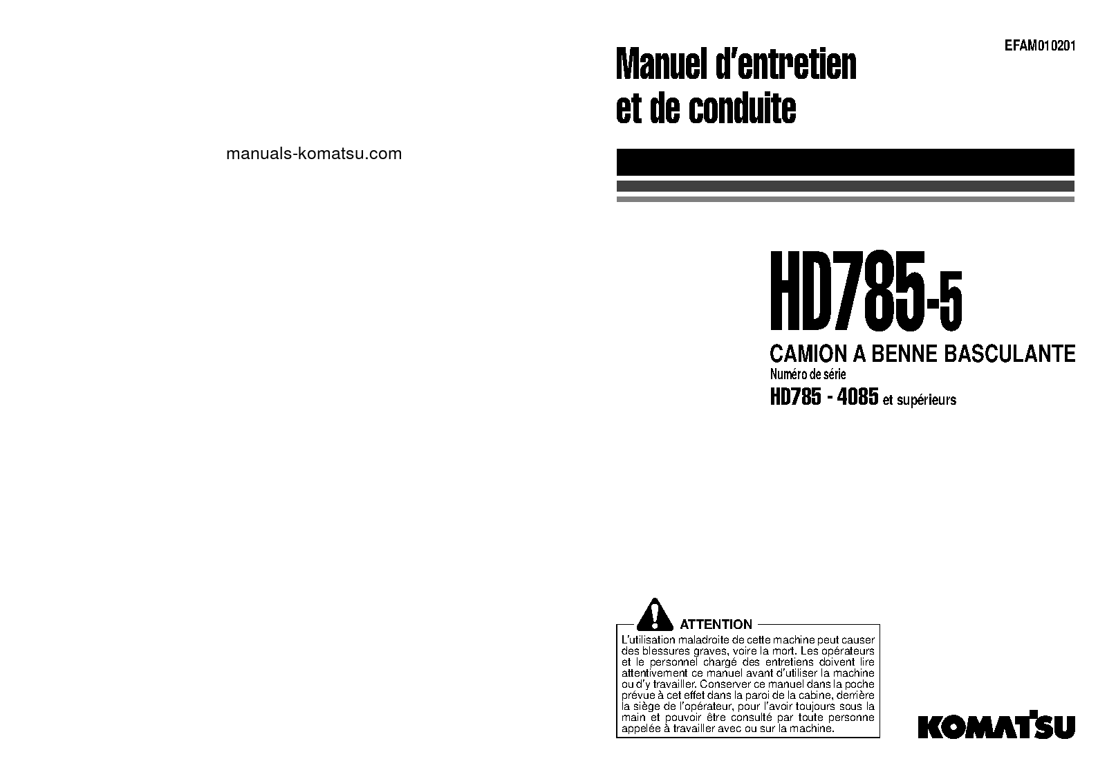komatsu HD785-5(JPN) S/N 4084-UP Operation manual (French)