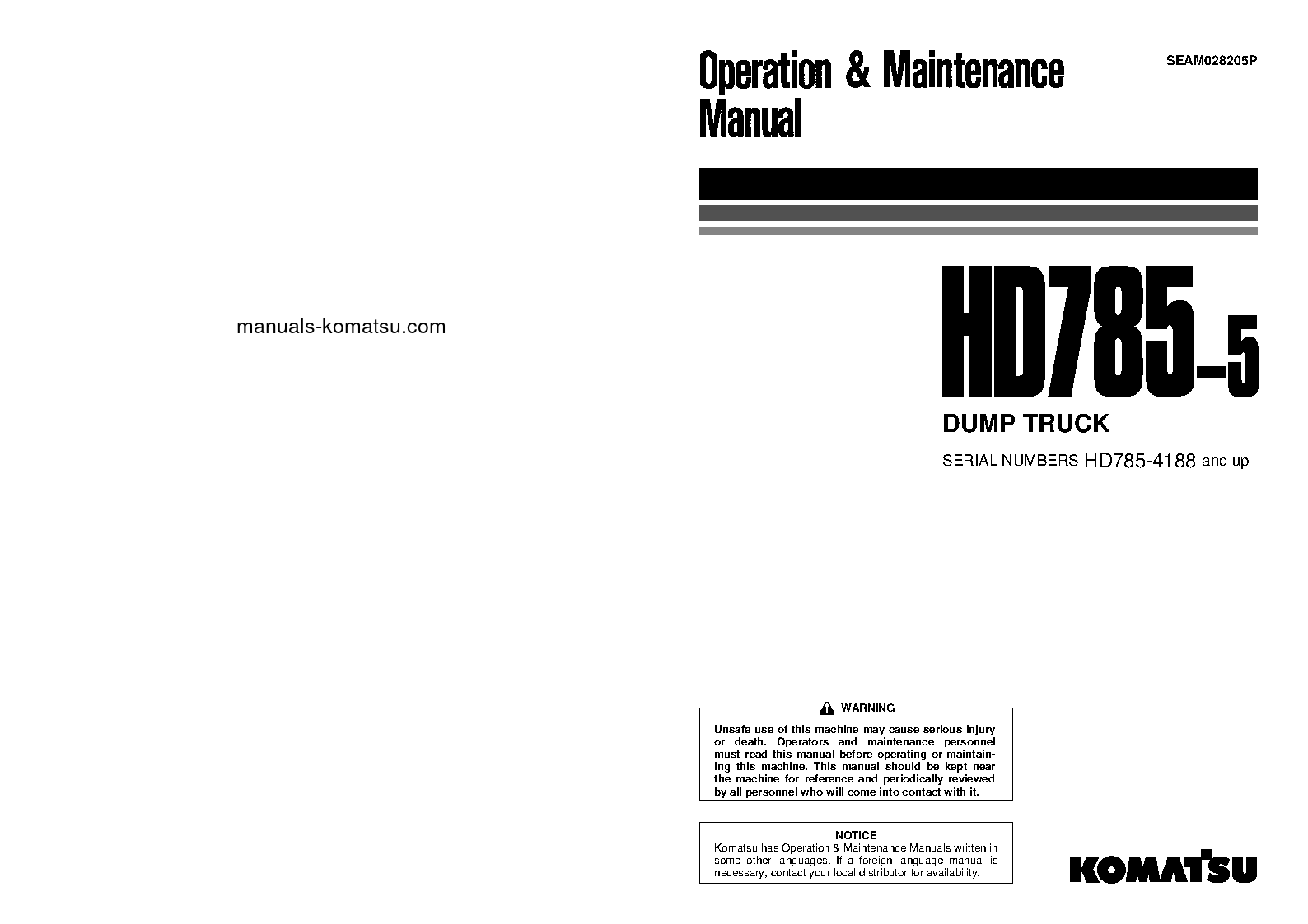 komatsu HD785-5(JPN) S/N 4188-4253 Operation manual (English)