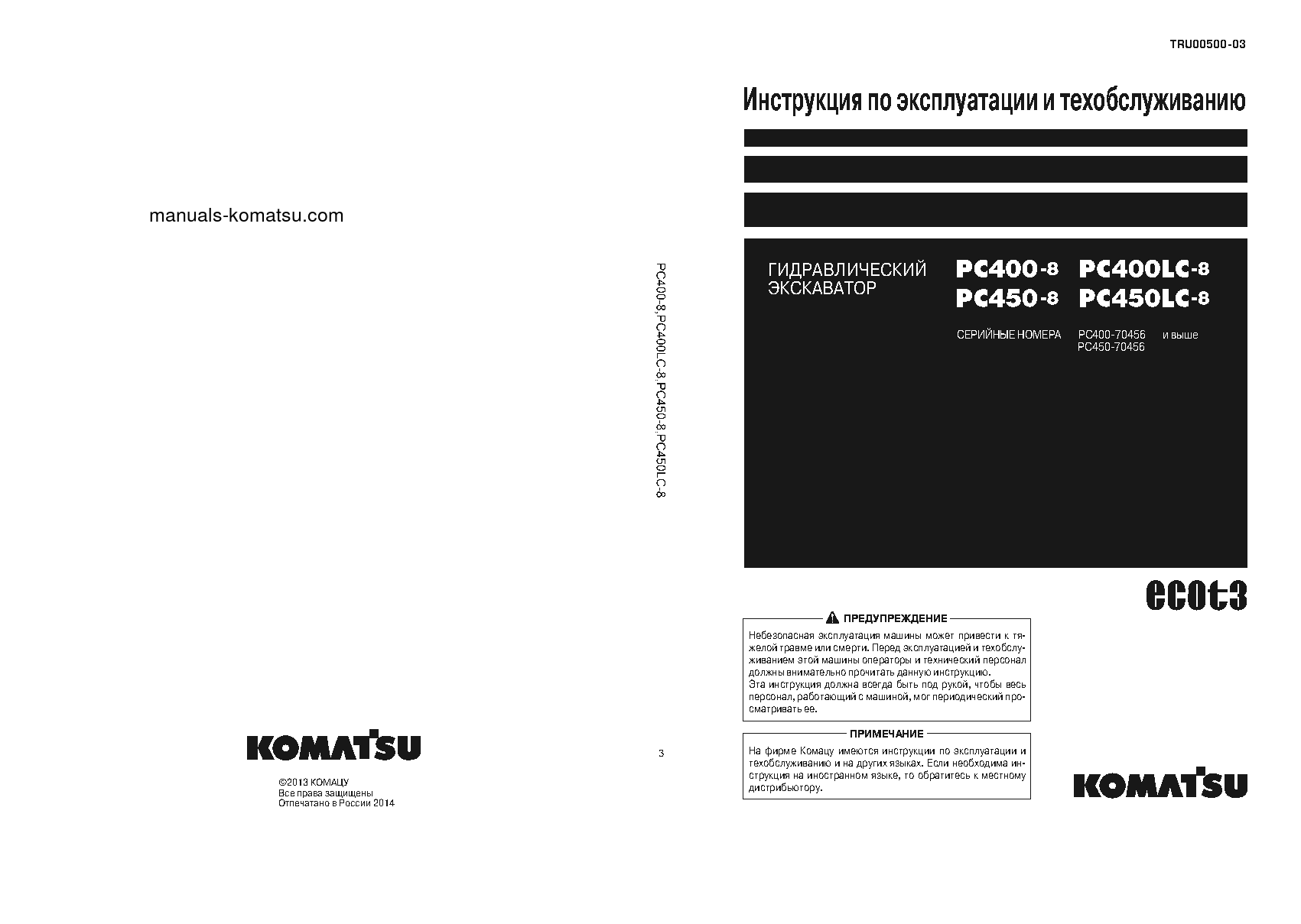 komatsu PC400LC-8(JPN) S/N 70450-UP Operation manual (Russian)