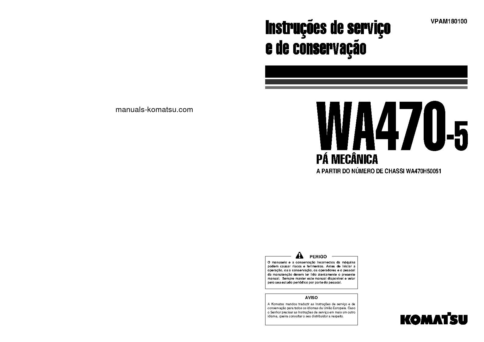 komatsu WA470-5(DEU)-H S/N H50051-UP Operation manual (Portuguese)