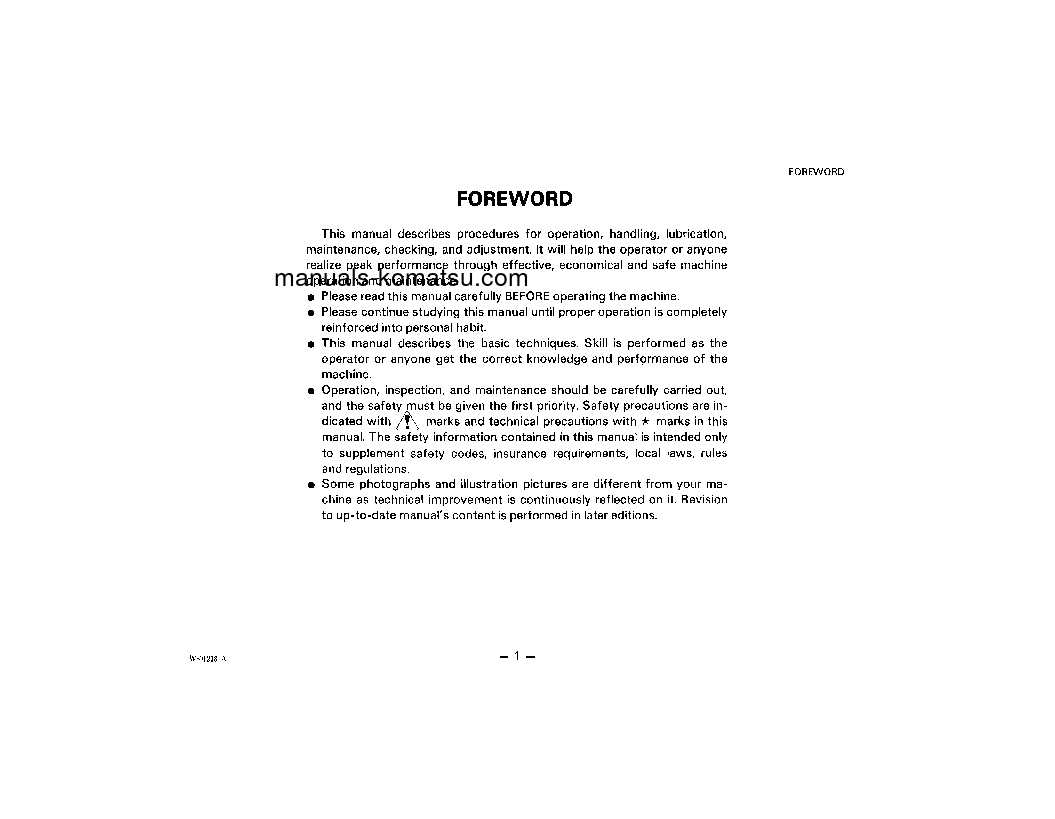 komatsu WA600-1(USA)-L S/N A10033-UP Operation manual (English)