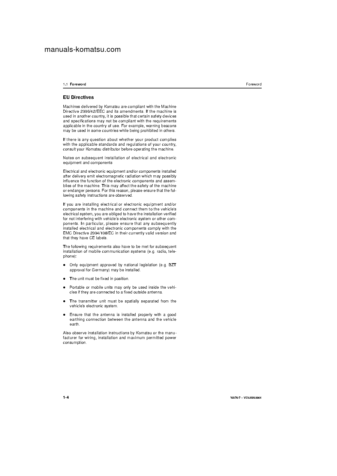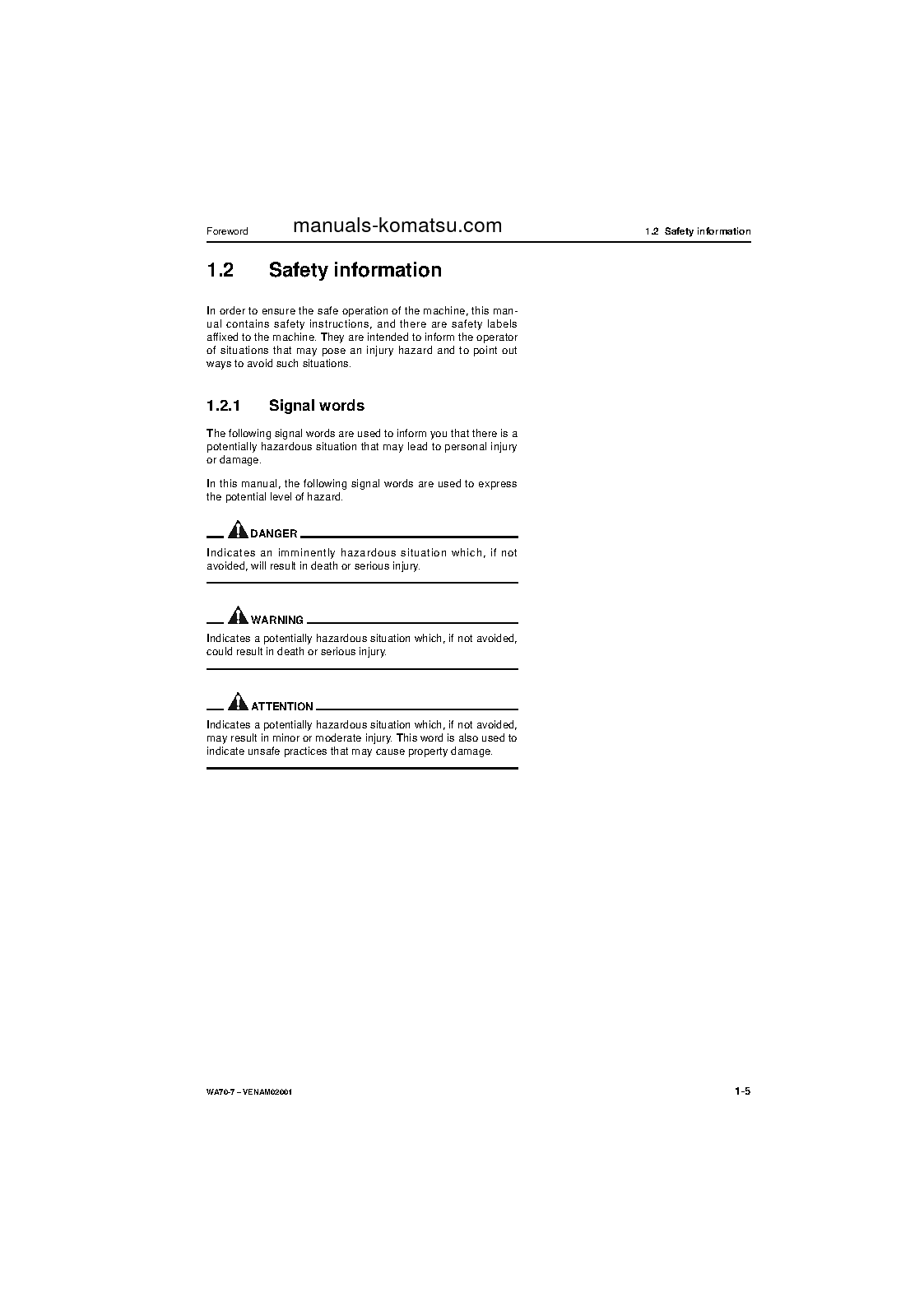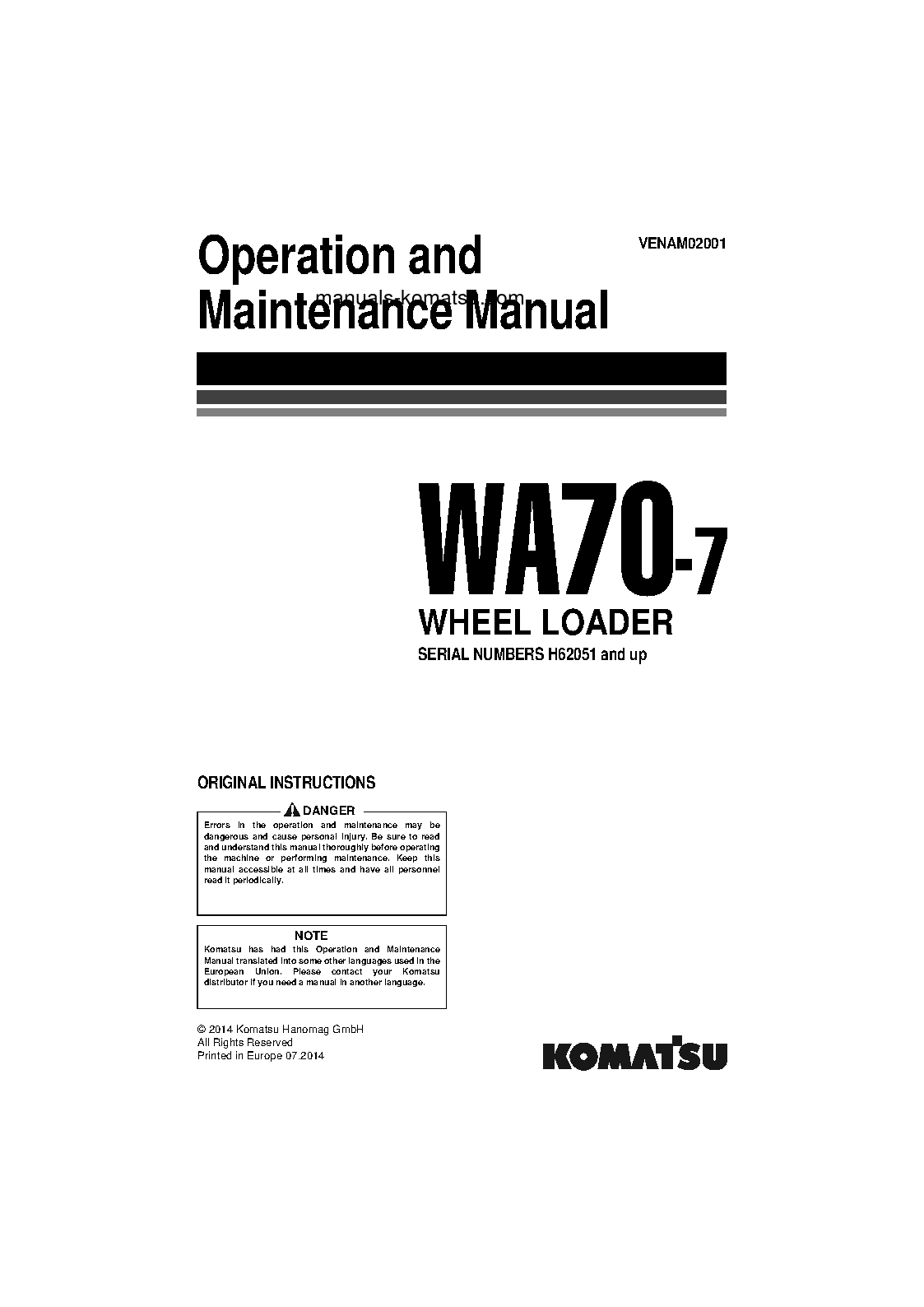 komatsu WA70-7(DEU) S/N H62051-UP Operation manual (English)