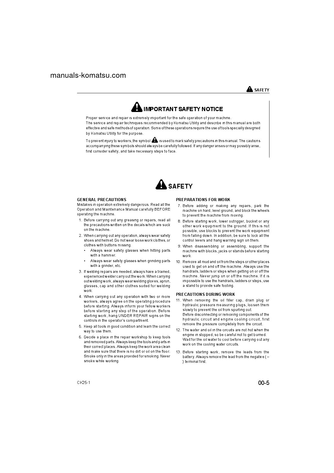 komatsu CK25-1(ITA) S/N F00003- Shop (repair) manual (English)