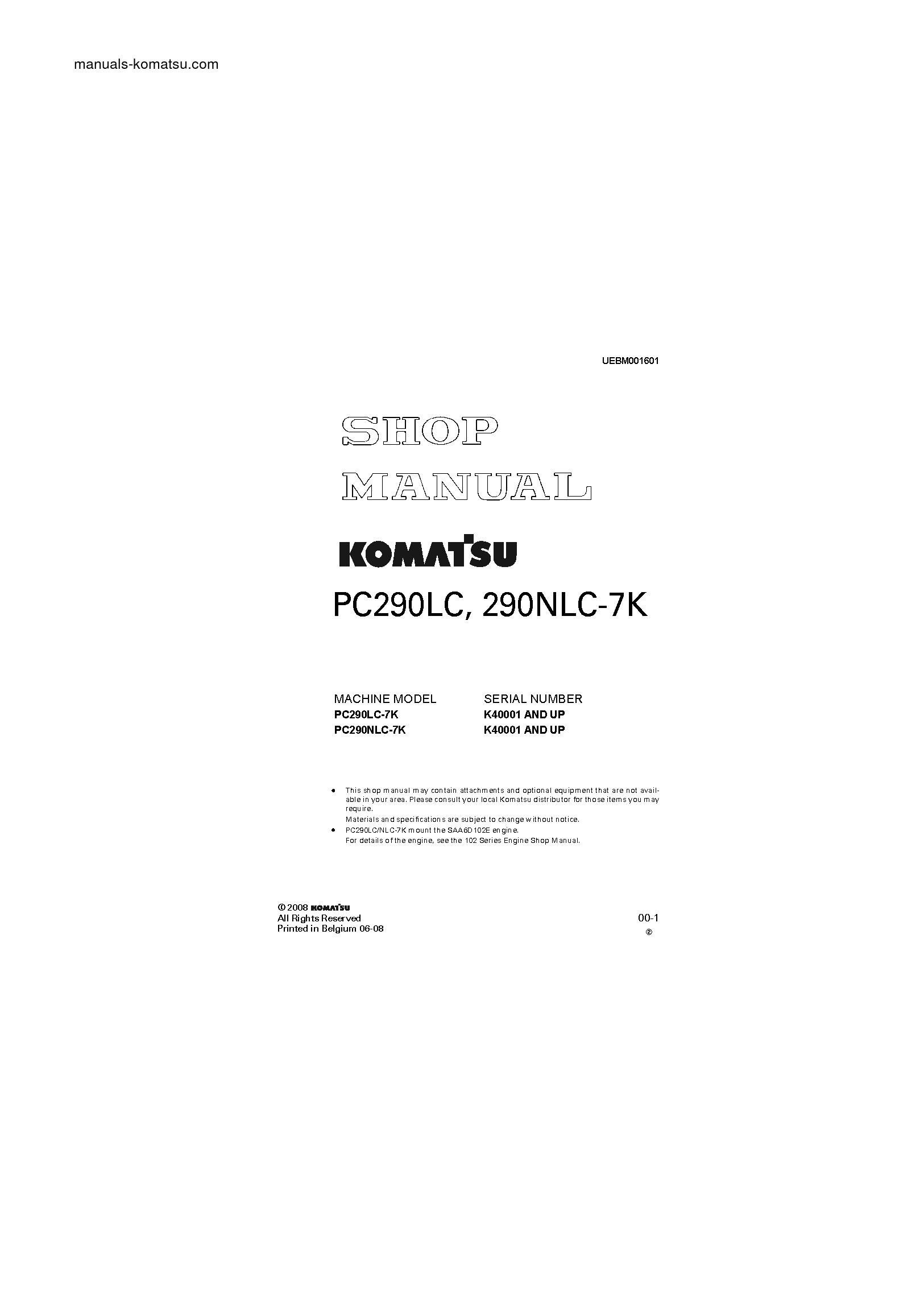 PC290LC-7(GBR)-K S/N 40001-UP Shop (repair) manual (English)