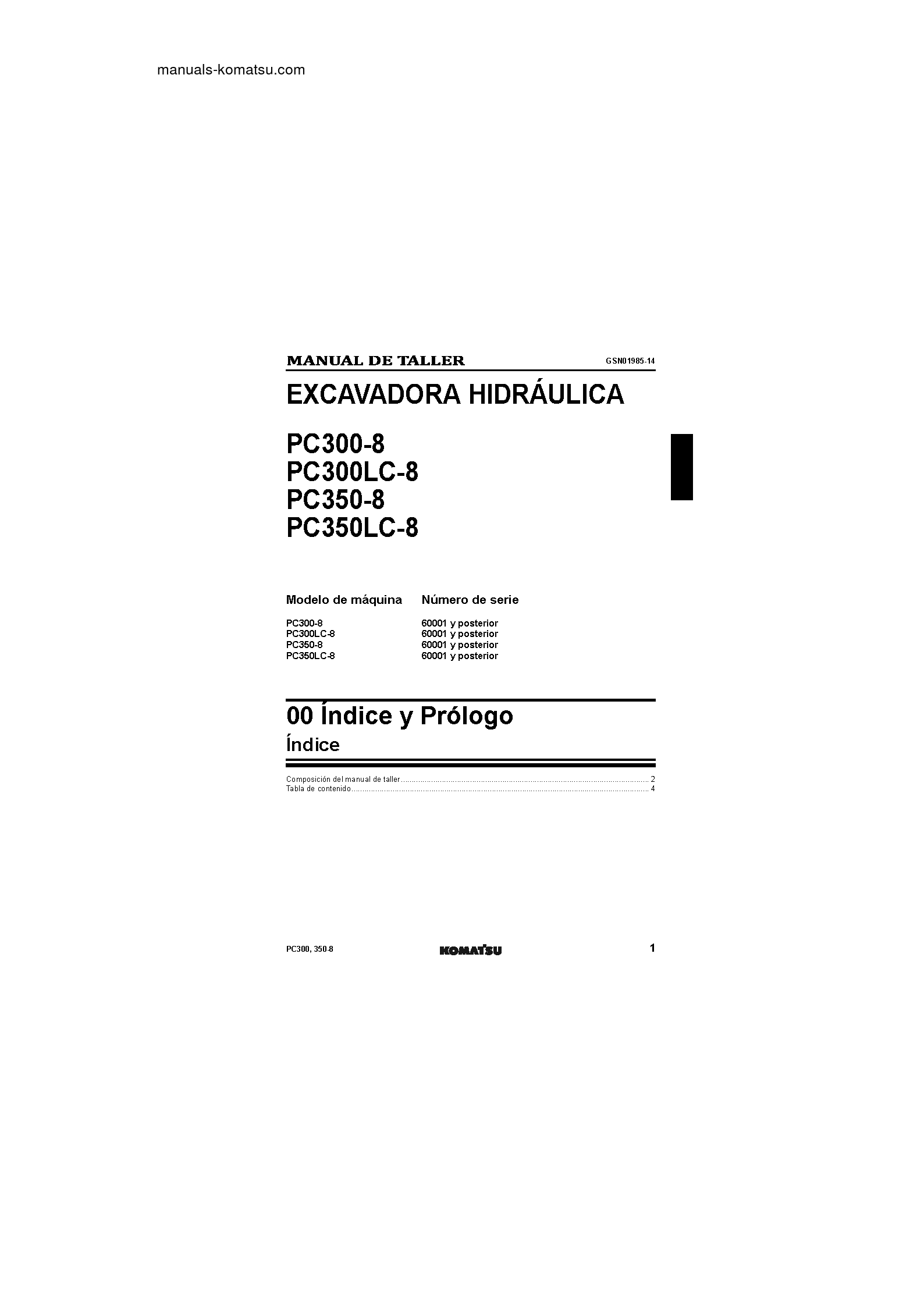 komatsu PC350-8(JPN) S/N 60001-UP Shop (repair) manual (Spanish)