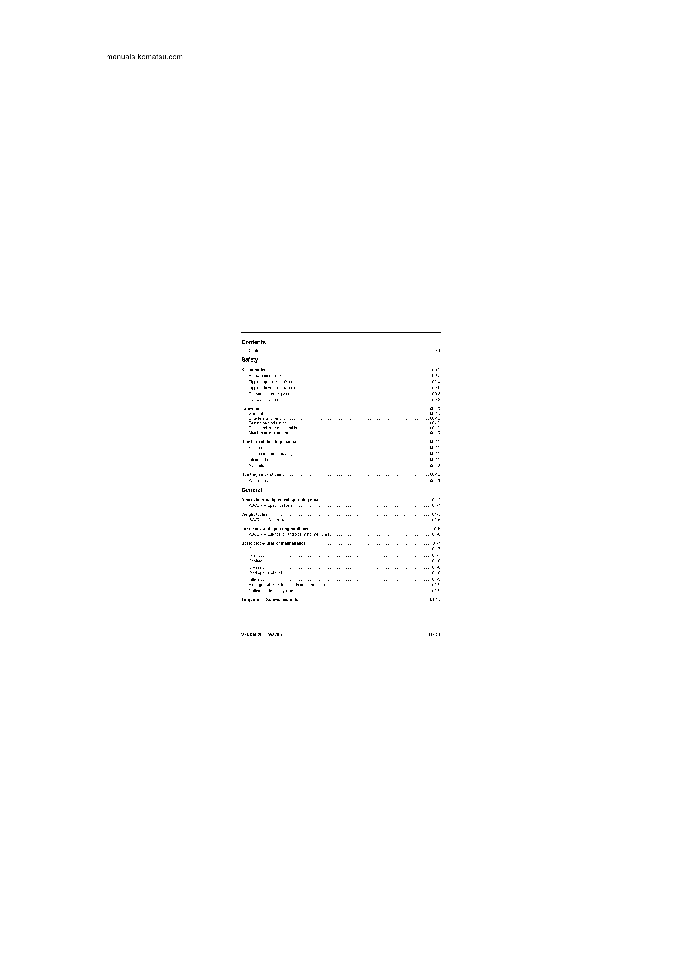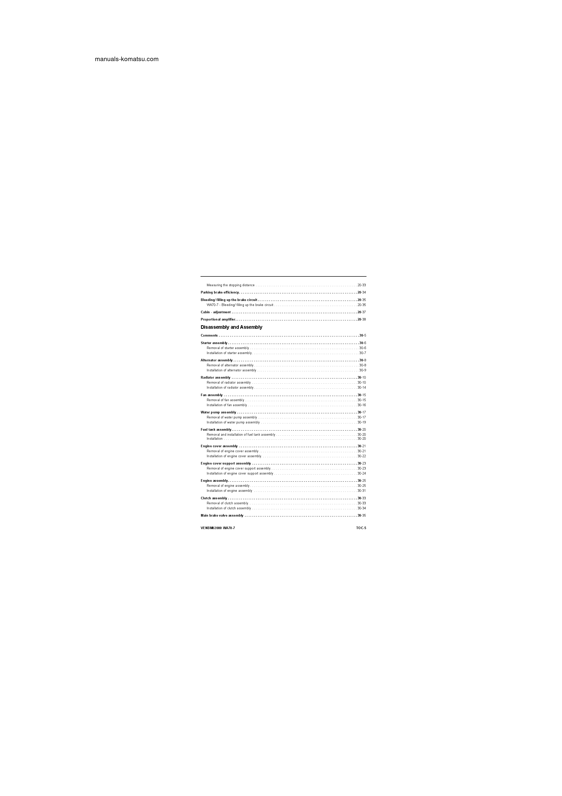komatsu WA70-7(DEU) S/N H62051-UP Shop (repair) manual (English)