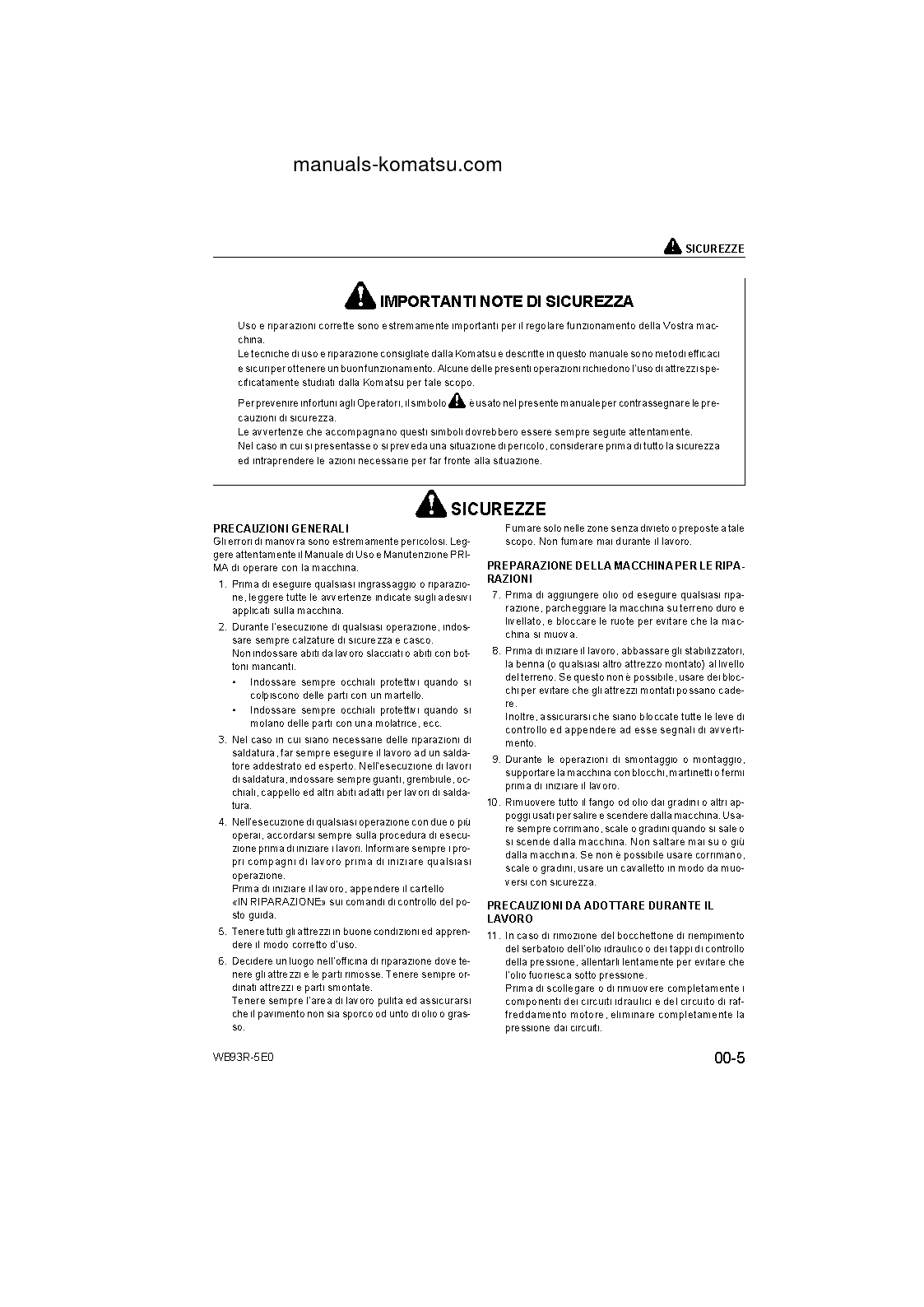 komatsu WB93R-5(ITA)-TIER 3 S/N F60003-UP Shop (repair) manual (Italian)